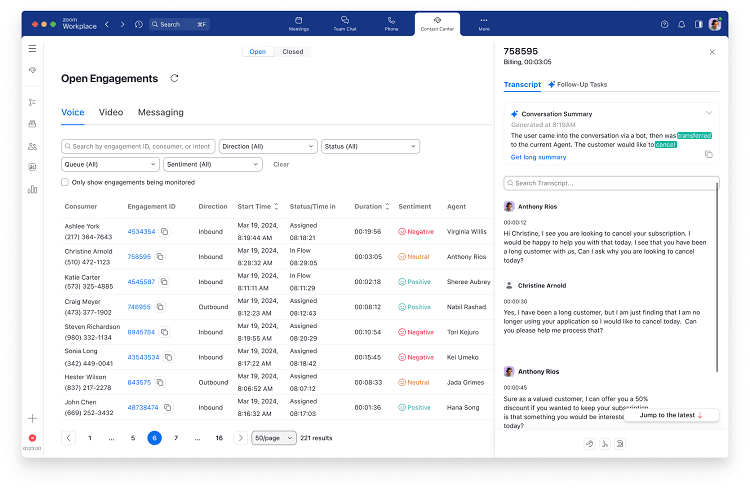 يتضمن Zoom Contact Center ميزة AI Companion لمركز الاتصال بشكل مسبق ومجاني. وتشمل الإمكانات الإضافية الفورية المتوفرة مع AI Expert Assist استرجاع أفضل الاستجابات واقتراحها بذكاء من مجموعة منسقة من قواعد المعرفة وأنظمة إدارة علاقات العملاء (CRM) وأنظمة السجلات الأخرى. وبذلك سيتمكن المسؤولون المشرفون من إدارة عمليّات الوكلاء بشكل أفضل، ومن اتخاذ قرارات مبنيّة أكثر على معلومات قيّمة، عن طريق استعمال AI Companion الخاص بمركز الاتصال، والذي سيؤمّن مراقبة في الوقت الفعلي للتفاعلات المباشرة، على أن تطال هذه المراقبة مشاعر العملاء وملخصات بشأن المشاركة والتفاعل ضمن لوحة معلومات واحدة، الأمر الذي يسهل تحديد أي من المشاركات والتفاعلات تستوجب أن تحظى باهتمامهم.