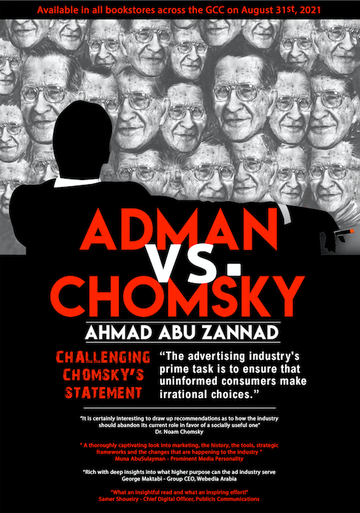 Ahmad Abu-Zannad, award-winning author and advertising strategist launches his third book titled “Adman vs. Chomsky”. In his newest release, Ahmad boldly challenges Dr. Noam Chomsky’s criticism of advertising which states that the prime task of the advertising industry is to ensure that uninformed consumers make irrational decisions.