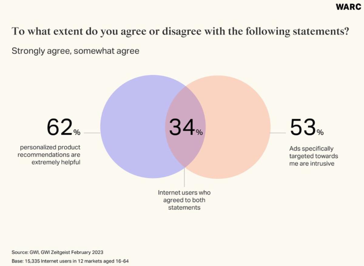 Shifting the balance between privacy and convenience: 53% of consumers perceive ad targeting as intrusive. 62% find personalised recommendations helpful